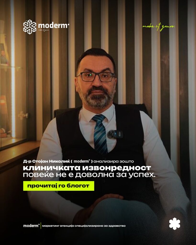 Д-р Стојан Николиќ (Moderm) анализира зошто клиничката извонредност повеќе не е доволна за успех и како „Непроменливите закони на маркетингот“ ја дефинираат иднината на здравствените организации во Македонија.